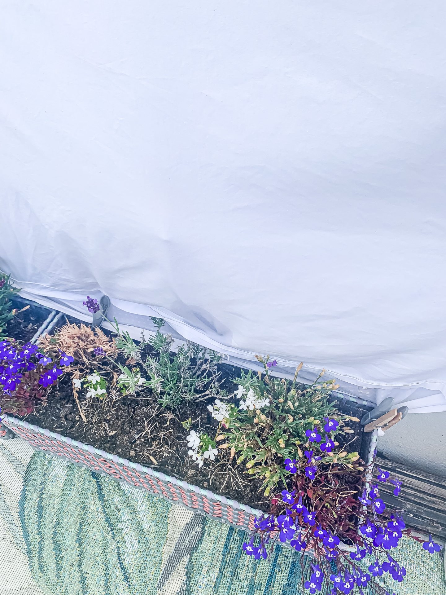 - Plant pots and troughs can be used to fix the bottom of the sheet to the wall to stop it blowing and keep it taut, along with some pegs or bulldog clips for good measure.