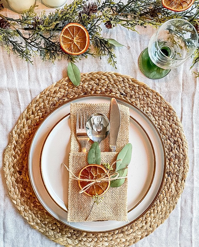 Perhaps add our faux olive branch wreath to the window or kitchen cupboards for some additional festivity and style up our rustic burlap cutlery pockets for your Christmas tablescape.