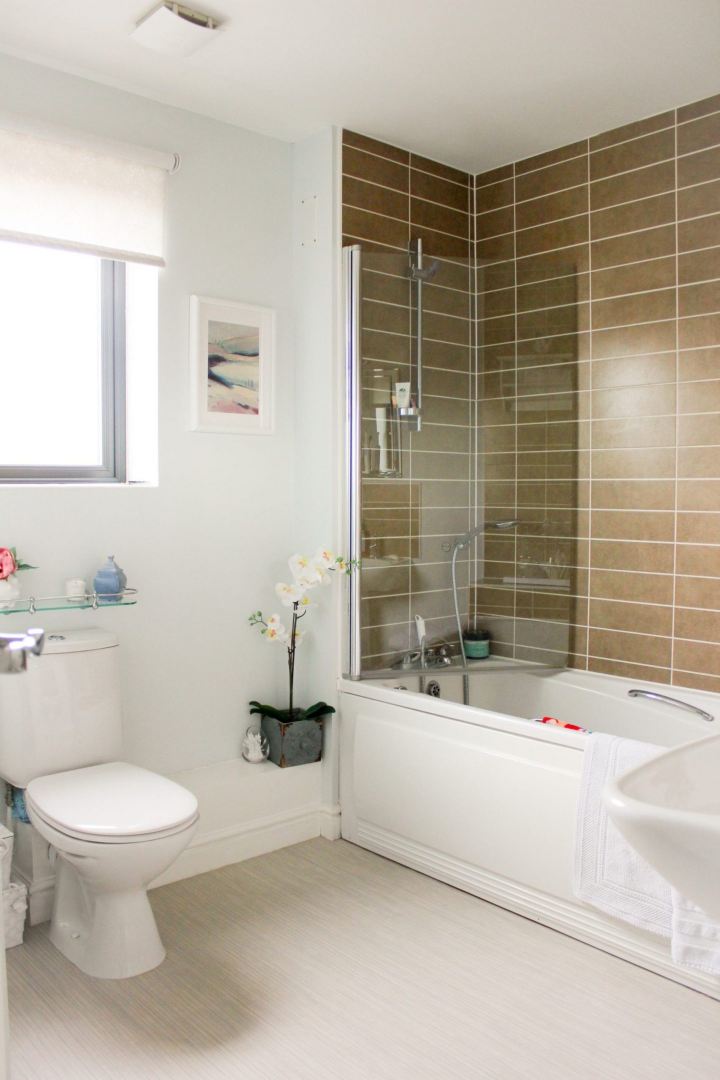 This Ronseal One Coat Tile Paint has completely transformed our bathroom to a boho neutral vibe which we absolutely love and better still, we finished the tile painting in one weekend.