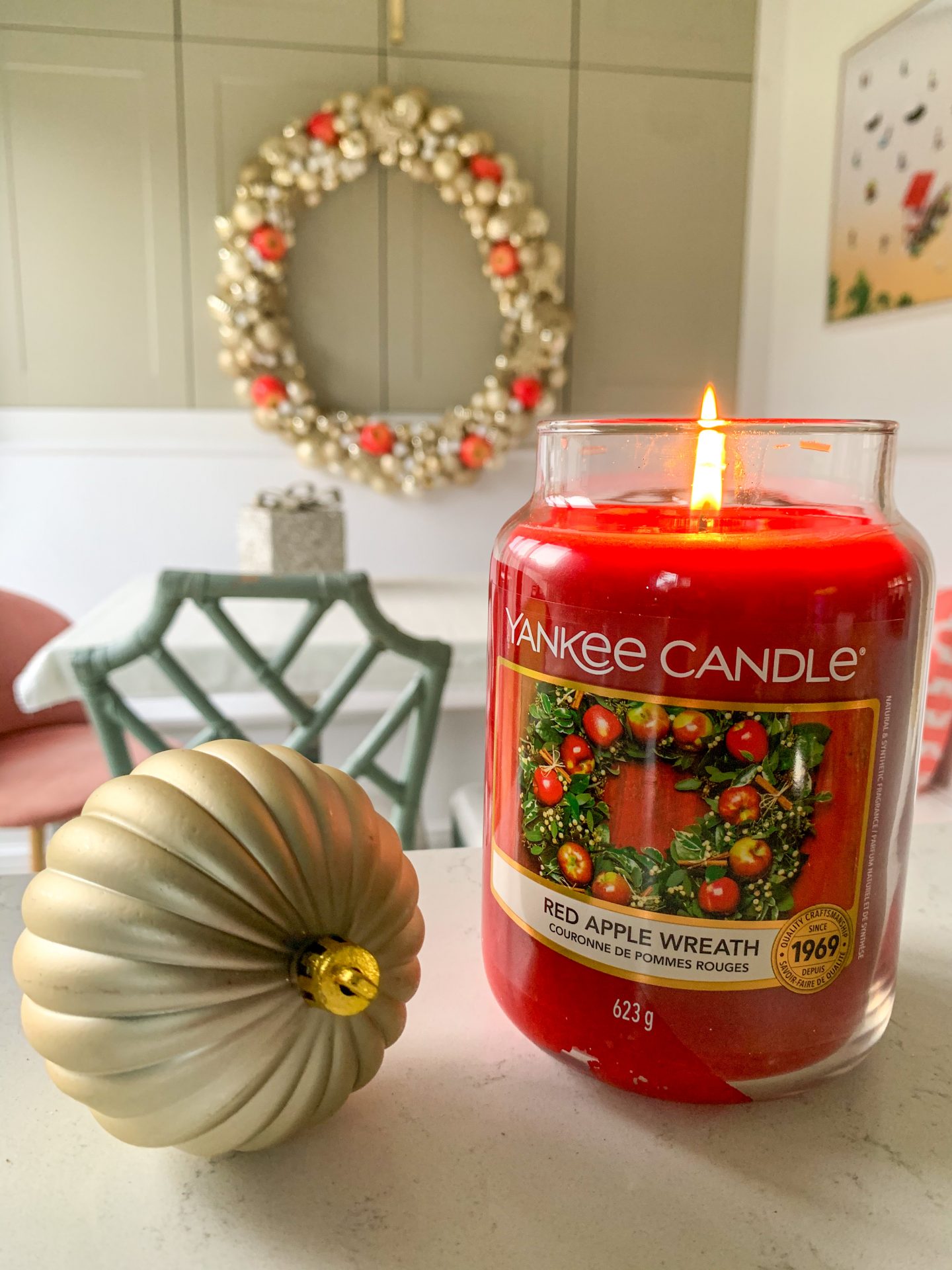 - Yankee Candle’s Red Apple Wreath to enjoy while making and admiring your masterpiece!