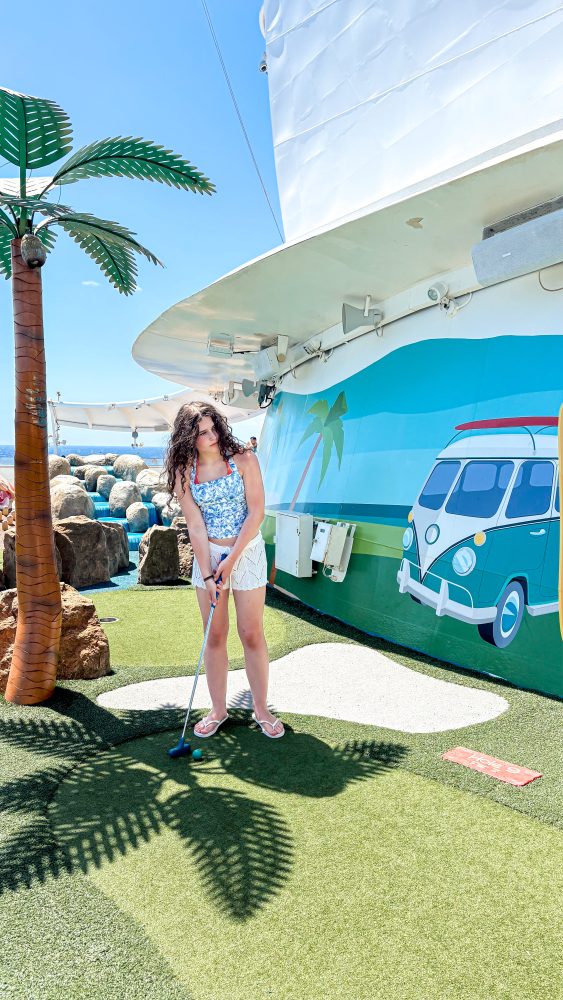 Our first day at sea was all about exploring the ship and embracing that glorious “no plans” feeling. We relaxed poolside, checked out the climbing wall, crazy golf and water slides, and tried lots of different cuisines in the main dining room followed by a dazzling evening show.