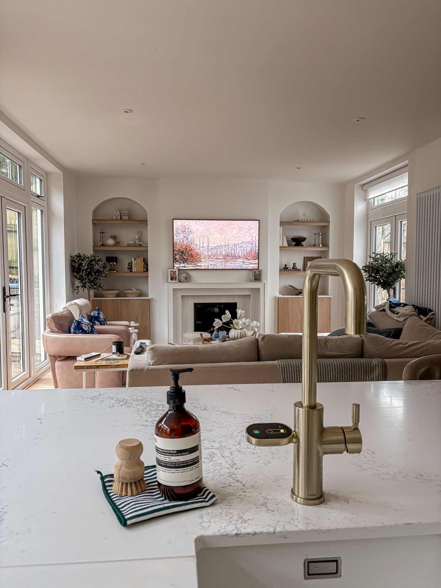 We’ve installed an Arno Boiling Water Tap in our new modern organic white and oak kitchen and we’re so glad we did!