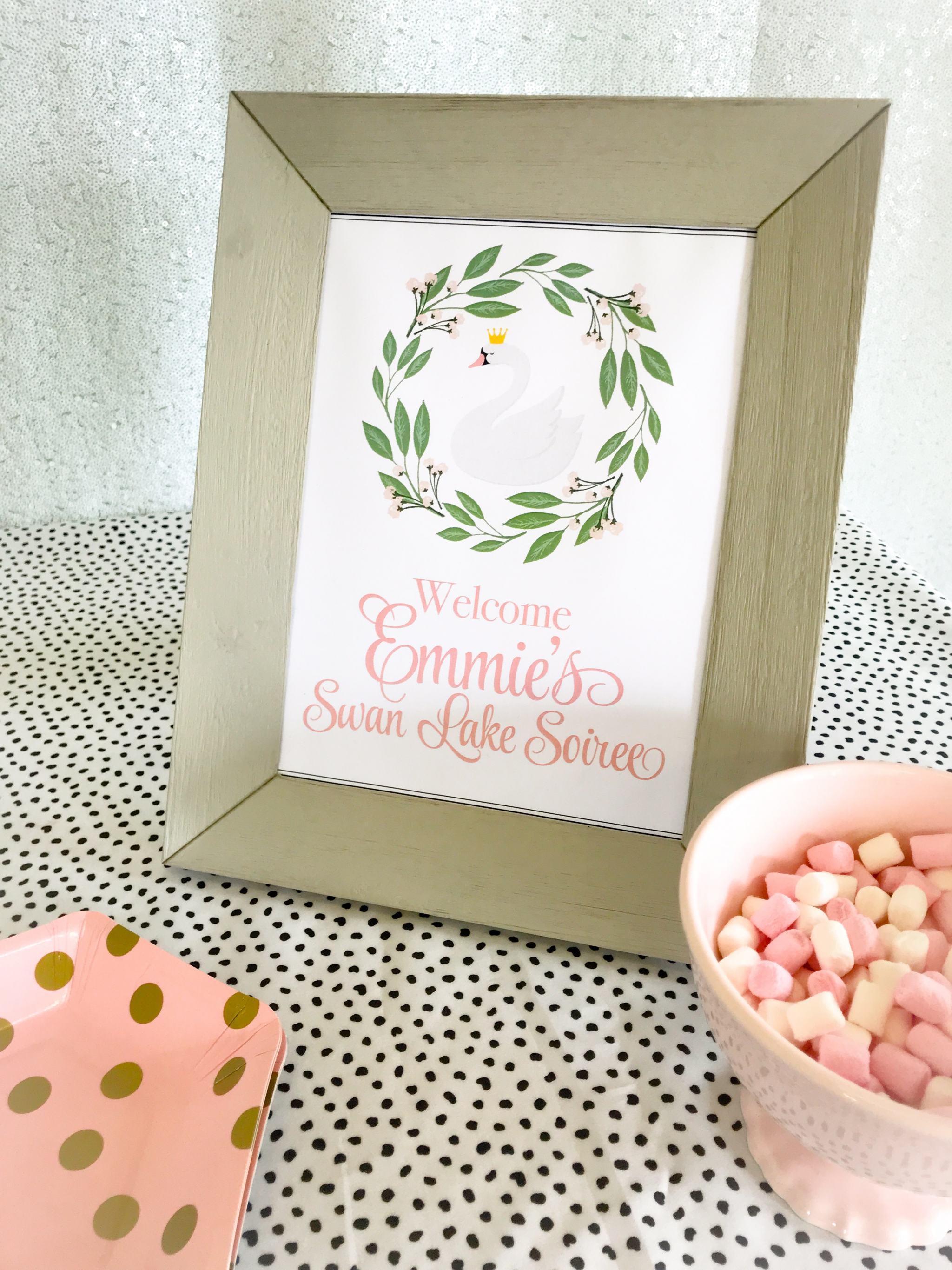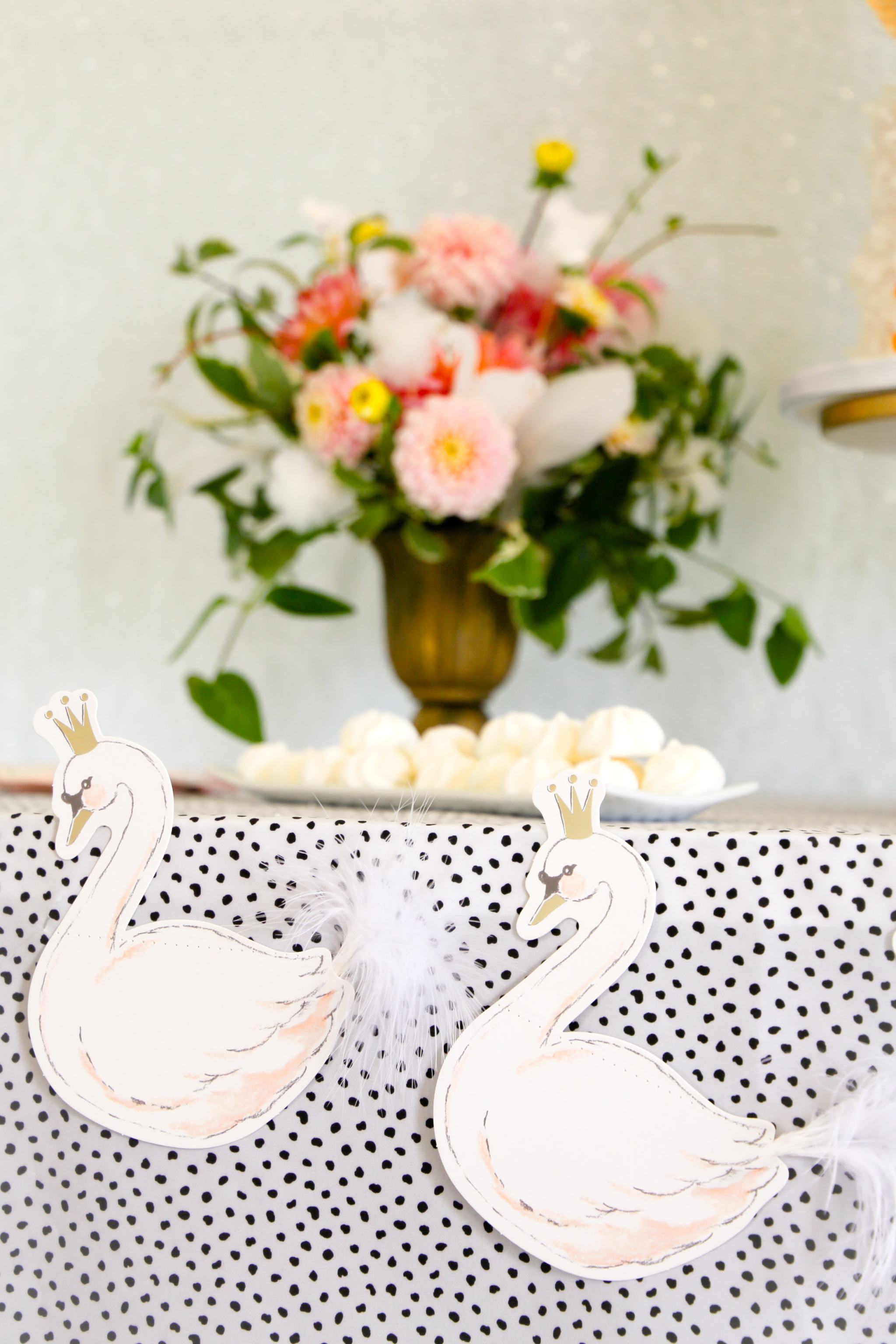 I collaborated with Sprinkled Designs for our Mermaid Party, Day of the Dead Halloween Party and Pink Winter Wonderland shoot and love Linda’s designs, so it was wonderful to get our creative brains together again for this one. The printables really pull together the main theme elements and the ‘thanks for swanning by’ favour tags were such a cute touch!