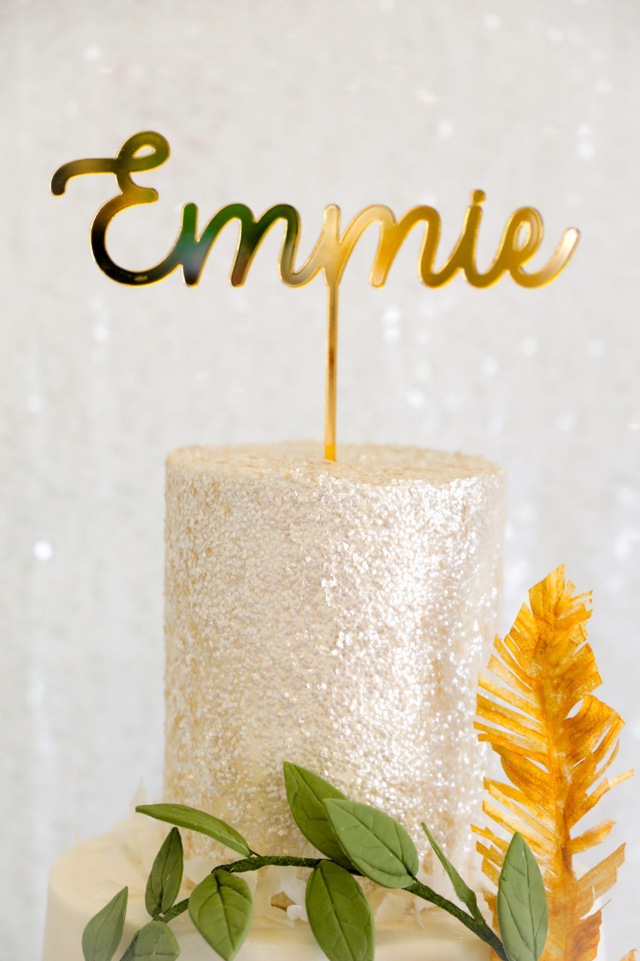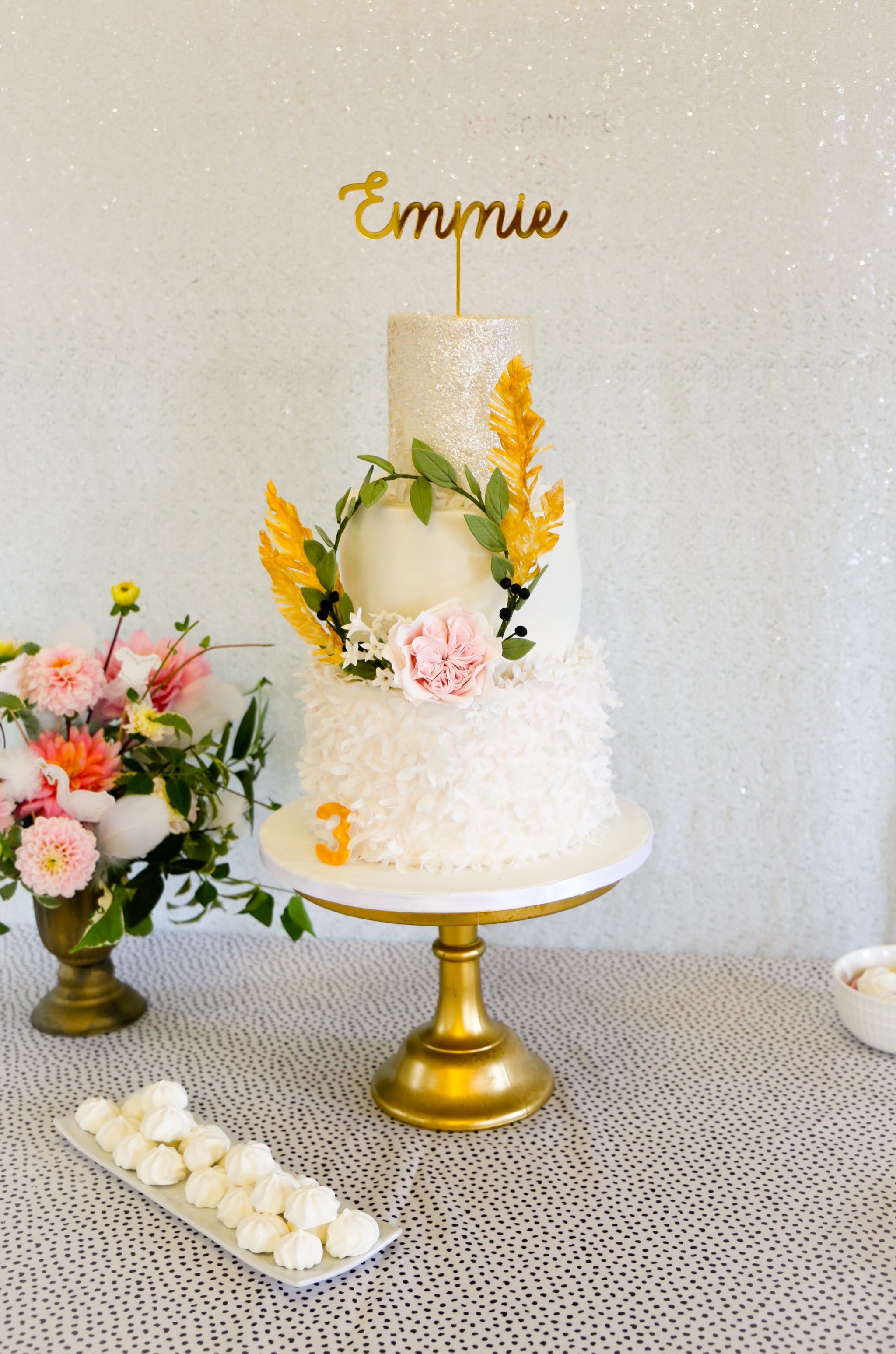 Michael and Addo provided the cake topper and it really is the icing on the cake so to speak! I love the gold against the sparkly white cake and backdrop.
