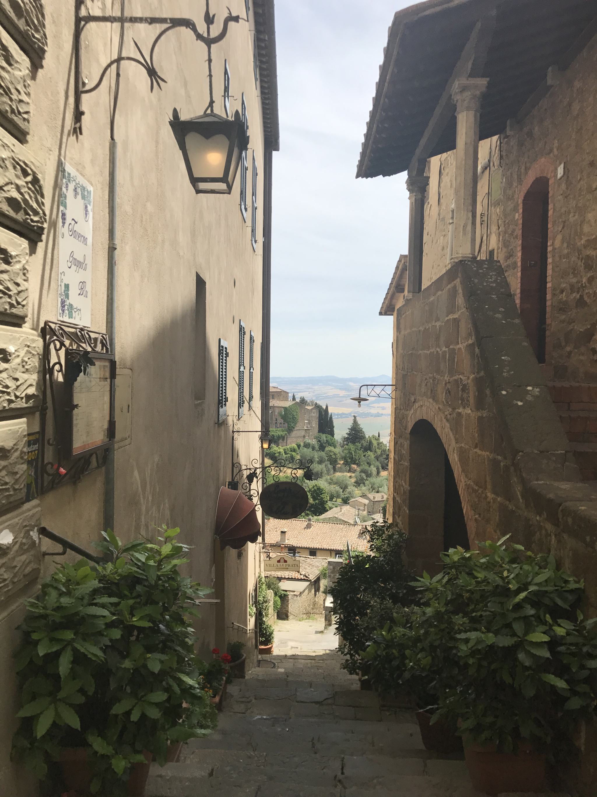 It’s the perfect place to amble down through the streets to the piazza, visit the museum or church, stop for a coffee and browse in the boutiques along the way. There are picture perfect scenes at every turn and stunning views over the olive orchards and vineyards.