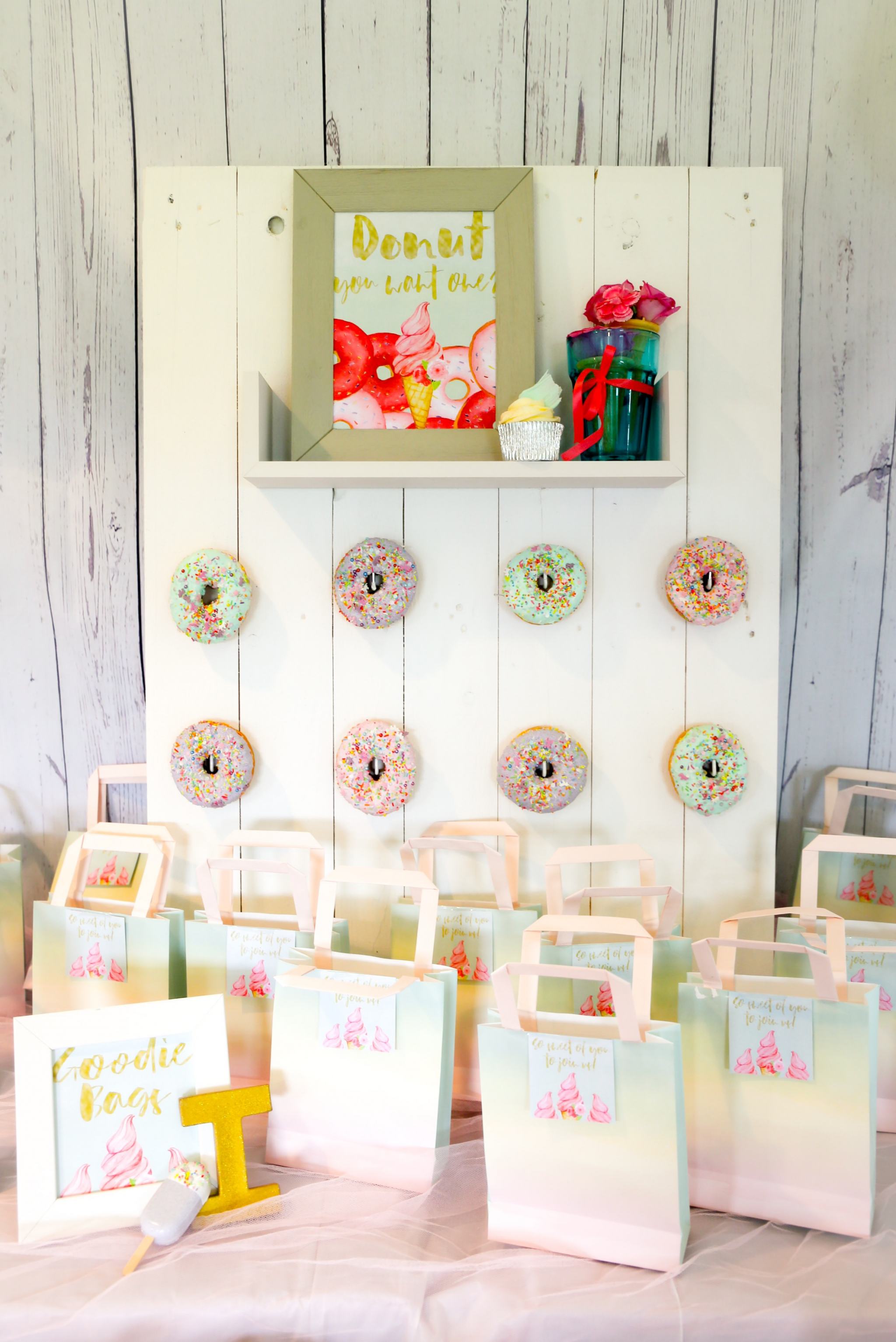 I’d started seeing donut walls pop up everywhere on Pinterest and Instagram, so I thought, what little girl wouldn’t love an Oh So Sweet donut wall at her party?! My love of wooden pallets is pretty clear when you see how I’ve used them before (check out our Boho Fiesta and Mermaid Party) and they came in handy once again. I put a different twist on ours by adding a shelf to the top of it so we can interchange the signs and decor depending on the occasion, so it’s safe to say you’ll be seeing this baby in another shoot sometime soon. (Read the full DIY here)