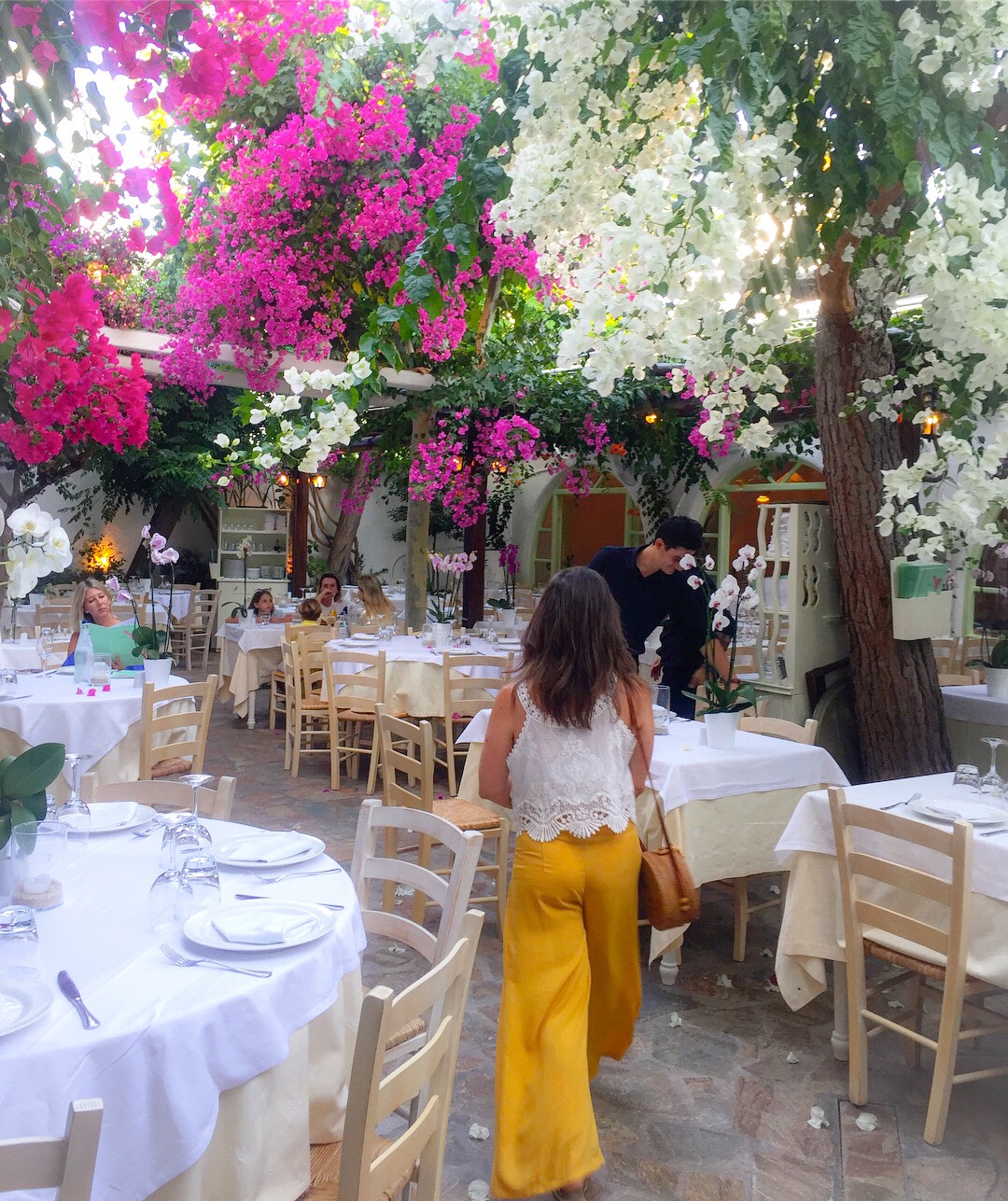 Avra Restaurant is a hidden treasure (literally – Google Maps was our friend) and has incredible reviews on Tripadvisor. It was like something from a Mamma Mia film complete with a blanket of bougainvillea flowers above the terrace.